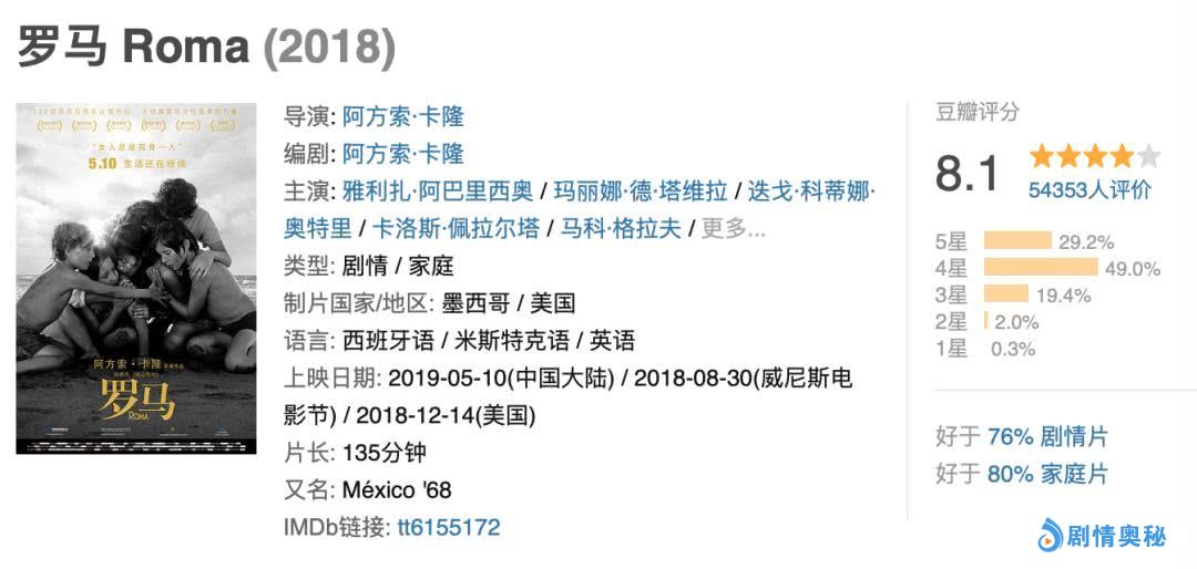 获了无数电影大奖,拿到了不知多少个年度十佳的《罗马》