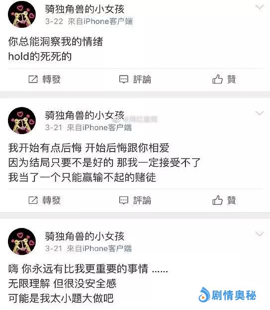包括网友这次扒出的疑似乔欣小号,展现出的也完全是一个在恋爱中极尽卑微的痴情女孩形象。