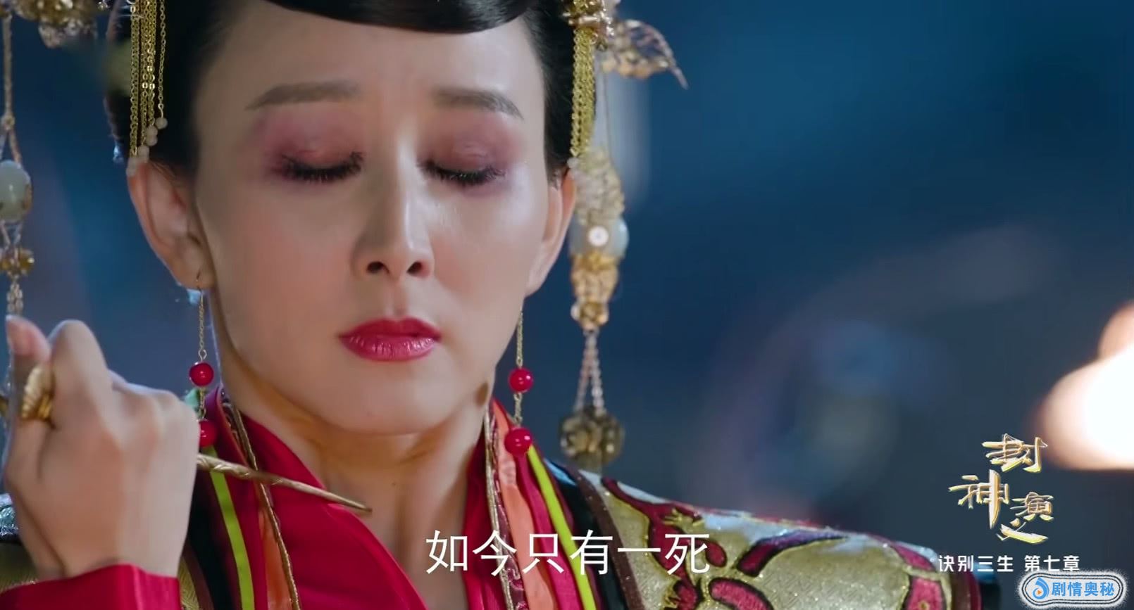 最后姜王后被妲己逼死献祭祈天。预告中,姜子牙受师尊的命令,下凡安排封神的事情,不管人妖仙三界中的哪一界都是有可能被封神。所以姜王后死后就被姜子牙封为了“太阴星”,从此就开始了另一种生活,当然成为神仙的姜王后选择了以德报怨。她找到天尊说要他干涉纣王的做法,立妲己为王后。这样的要求还真是无法拒绝,因为姜王后一直就是人美心善的代名词,所以不少网友表示:王后你这样也太好了吧。