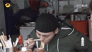 随后陈伟霆又跟着大部队前去菜场买菜,望着菜场内的汤面,他正事不做,就提出要先吃面,黄磊看他那脸馋相只得答应。