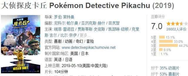 《复联4》之后,接棒的《大侦探皮卡丘》延续了好莱坞大片热卖之狂潮,口碑也相当不错,豆瓣7分。按这种趋势来看,该片极有可能又是一部10亿级大片,好莱坞大片真的太厉害了!