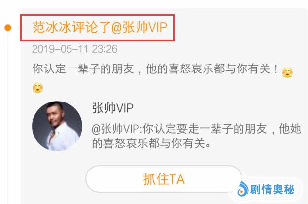 5月11号深夜11点26分,范冰冰本尊上线了,亲自评论了男友人张帅!他是一个造型师、设计师,与范冰冰关系很好,私交很深。张帅发文说:你认定要走一辈子的朋友,他/她的喜怒哀乐都与你有关。