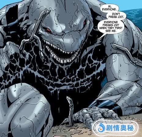 “鲨鱼王”是DC漫画中的一个非常著名的反派,美剧《闪电侠》中也有他的身影。他是自杀小队的核心成员,与海王、绿灯侠都有一些恩怨。鲨鱼王拥有旧神的血统,无论是在水下还是在陆地上都势不可挡。