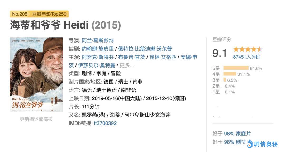 期待《海蒂和爷爷》的原因,并不仅仅因为它现在在豆瓣高达9.1分。