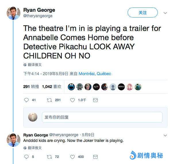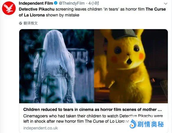 据外过媒体报道,加拿大蒙特利尔的一家影院,居然把《大侦探皮卡丘》放错成了恐怖片《哭泣女人的诅咒》,当时影厅里坐着很多前来看电影的孩子们,他们都被这部恐怖片给吓哭了。