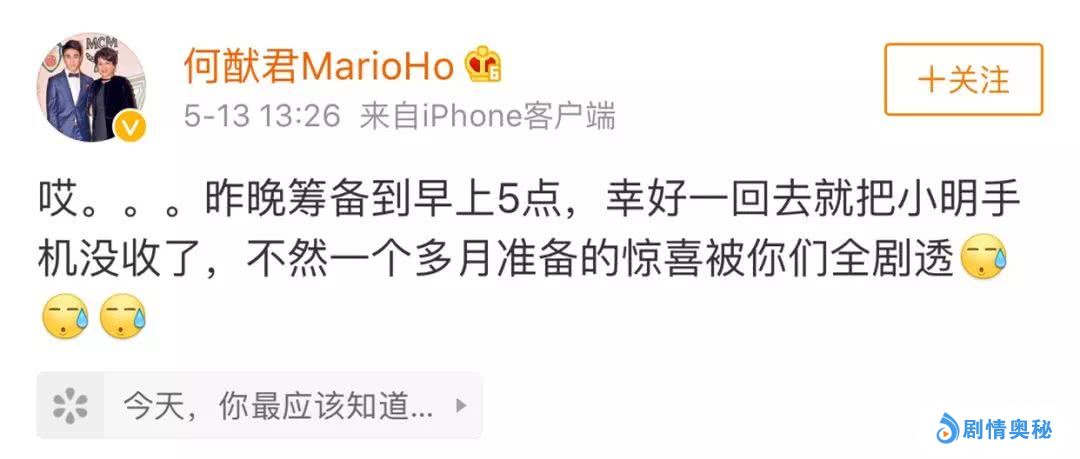 眼见求婚事件已经被媒体曝光,何猷君直接发博承认求婚一事,透露还好把奚梦瑶手里没收了,不然准备了一个多月的惊喜都没了。