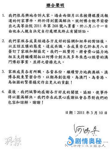 本来赌王还准备将二房、三房告上法院,场面十分混乱,最后赌王一家除了一张声明,称内部已经调节好财产分配,三房四房分到多少财产,也只有他们知道了。