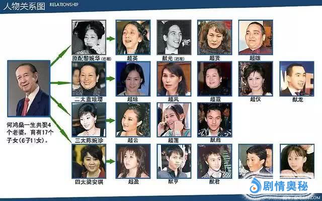 赌王一共有四房太太,原配黎婉华早已离世,二房何超琼是公认的赌王接班人,家族企业基本在她手上。