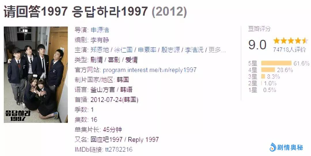 可以说,《请回答1997》是《请回答》系列最重要的一部,没有它的成功,就不会有大家喜爱的《1994》和《1988》。