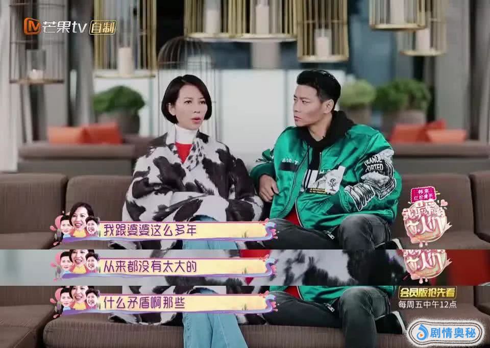 蔡少芬和张母的关系比上一对要缓和一些,蔡少芬面对节目组的提问,一脸轻松的说“这么多年来和婆婆没有太大的矛盾”。