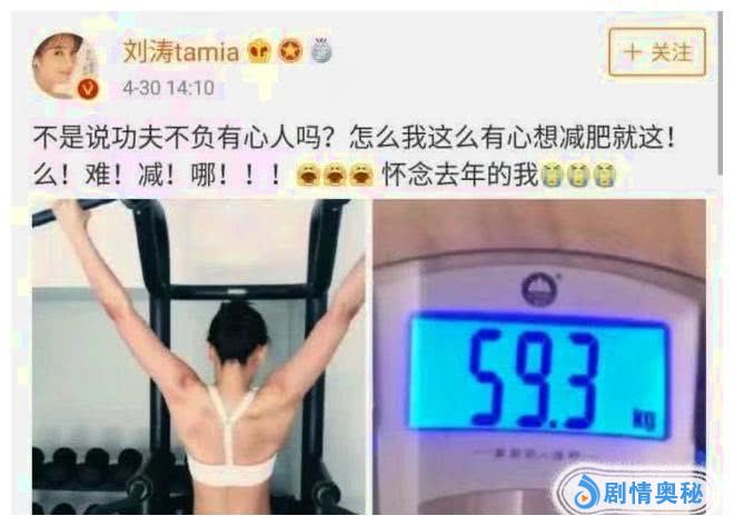 涛姐最近发的微博里有一条是关于她的体重的,微博中说到她现在的体重已经达到将近60公斤,这对于女星来说这个体重确实属于“重量级”了,但是即使很重的涛姐平时看起来还是很瘦啊,这是什么神仙体质啊!