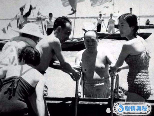 1966年7月,身着泳装的张玉凤陪同毛主席最后一次游长江。