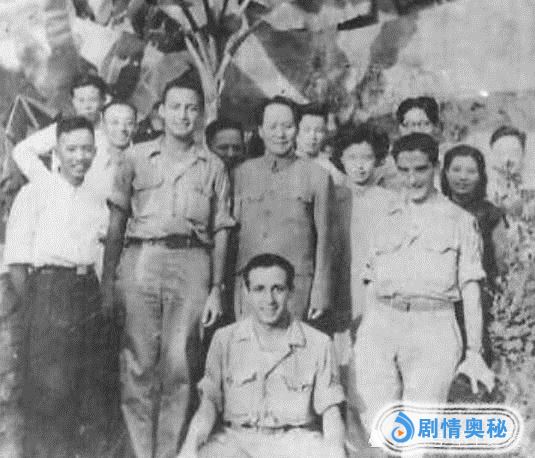 重庆谈判期间,毛主席与美国第十四航空总部的士兵们合影。