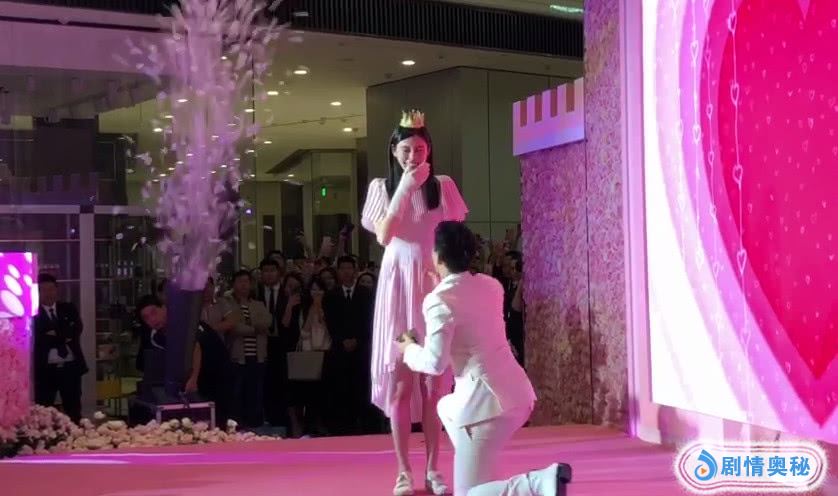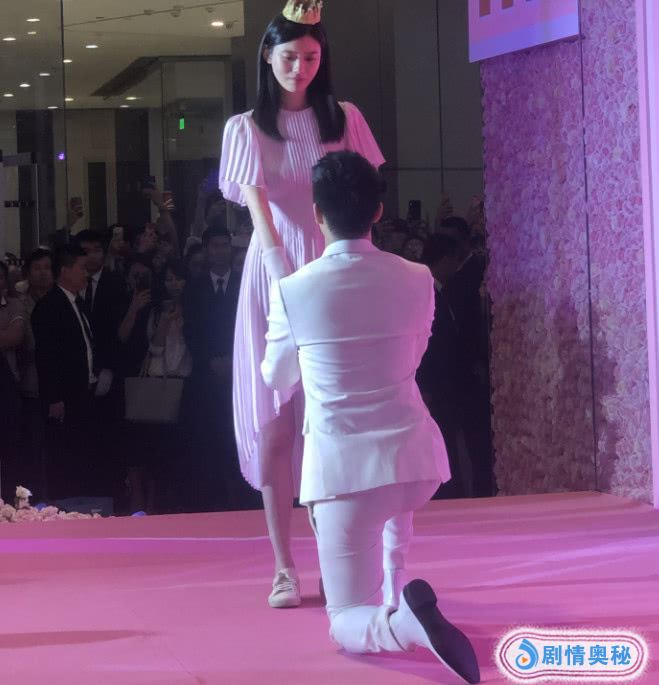 在上海尚嘉中心何猷君求婚现场,最激动人心的时刻到来了,奚梦瑶头戴皇冠站在台上,身穿白色长裙,非常性感迷人。何猷君身穿一身白色西装,单膝跪地,正式向奚梦瑶求婚。这个画面好甜蜜,奚梦瑶太幸福了吧。