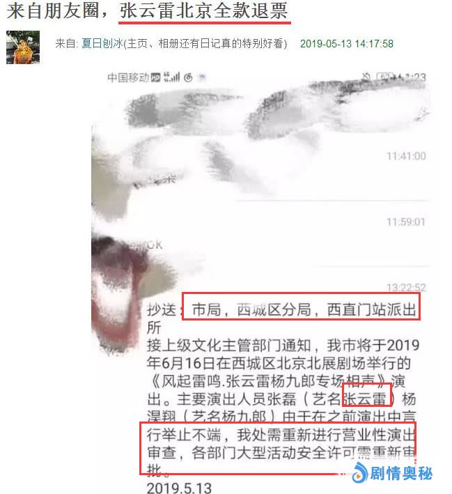 同时有知情者黄牛发布了北京文化主管部门函件,说因为张云雷演出活动行为不端,演出场地需要重新进行营业许可证审核,这是疑似要被封杀的节奏吗?还有网友爆料,张云雷北京演出全款退票。
