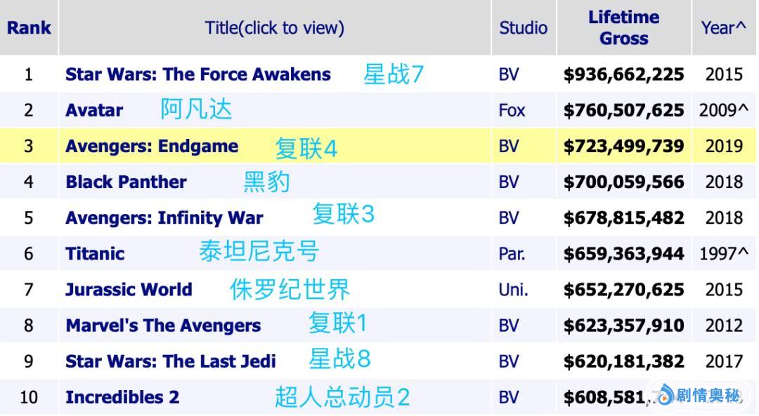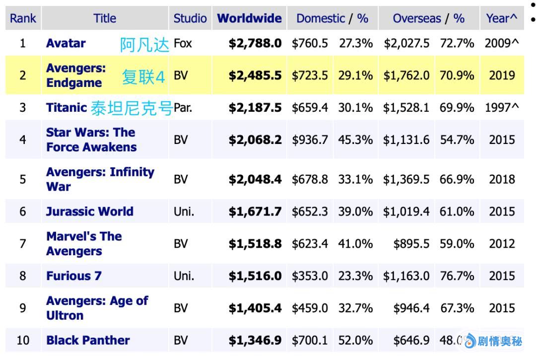《复联4》目前在中国内地的热度已经消退殆尽,单日冠军也已拱手让给了《大侦探皮卡丘》,根据猫眼平台的大数据预测,《复联4》在内地的最终票房应该会落脚在43亿元人民币附近,而《流浪地球》的最终票房为46.5亿人民币,这样看来,《复联4》想在内地超越《流浪地球》,也已成了“不可能完成的任务”。(撰文:莫秀才,数据来源:boxofficemojo、猫眼)