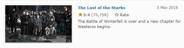 又到了一周一度权游剧迷受虐时间。自第四集“最后的史塔克”播出后被骂惨,imdb单集评分跌至6.4分,连原著作者马丁都公然表示不认亲儿子时,大家就已经或主动或被动地接受这部追了多年的神剧烂尾了。