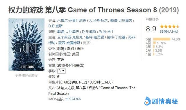 以至于网友调侃道:“1-4季是曹雪芹写的《红楼梦》,5季是高鹗续写的,6-8季是郭敬明写的《小时代》。”铺垫多年的权力大战,终于在第八季第五集触发。当然,开局即让豆瓣评分跌至8.9,没有最烂,只有更烂,下面让我来给大家梳理这一集的精彩槽点。