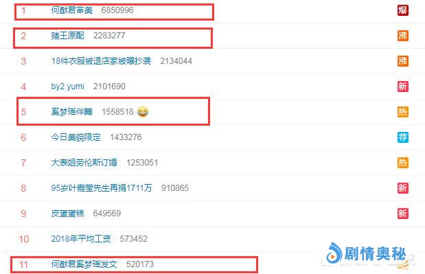 5月12日曝出将求婚,5月13日求婚,到了5月14日何猷君和奚梦瑶依然占据着热搜榜。