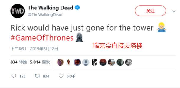 小编今天逛推特时发现《行尸走肉》的官方账号有一条最新消息,不过这条消息似乎是幸灾乐祸的给《权力的游戏》第八季第五集又捅了一刀。