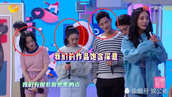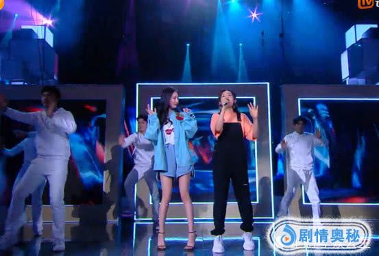 表演结束在台上杨幂和何炅说话的时候,就看见杨幂的身后几个艺人的眼神,全部锁定在了杨幂的腿上和鞋上。就连两个女生都是满眼羡慕的表情。