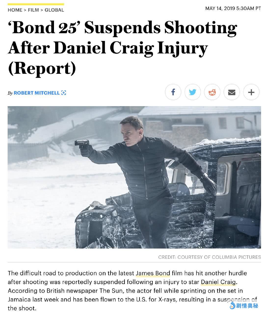 此次拍摄《邦德25》丹尼尔·克雷格老婆非常不满,因为动作戏太危险,他答应自己老婆要减少特技动作,对方才答应让他继续回归,没想到刚回归又受伤了。