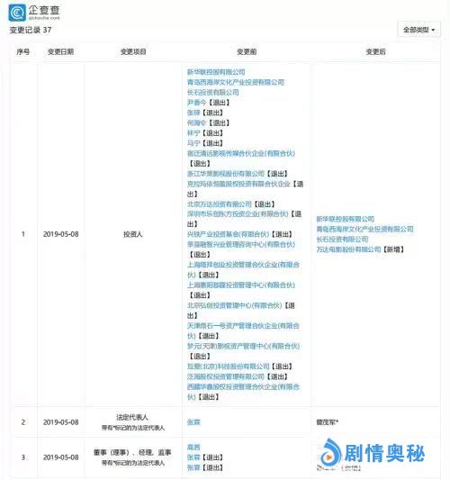 此外,林宁、马宁、华策影视、万达投资等20位投资人退出万达影视,万达电影股份有限公司作为新投资人加入。