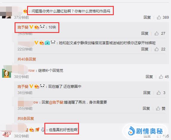 有吃瓜群众抨击说:问题是你凭什么蹭红毯啊?你有什么资格和作品吗?她呛声说:10块!但是更多网友都直呼真的好丢脸啊!