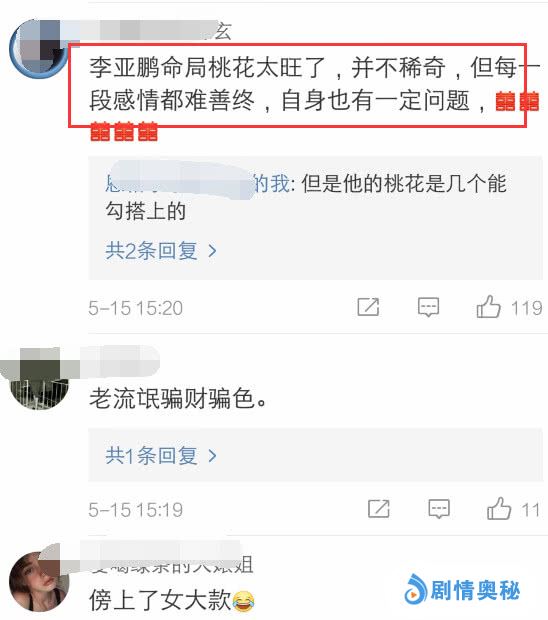 这下子女儿李嫣要马上迎来继母了,继母这个岗位可不好当啊!同时也有命理人士吐槽说:李亚鹏命局桃花太旺了,并不稀奇,当每一段感情都难善终,自身也有一定问题。