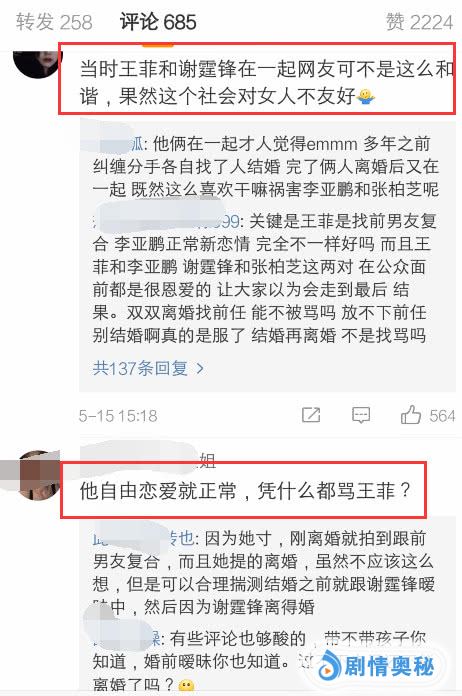 面对网友的攻击,王菲粉丝反问说:我家王菲不好吗?为什么要这种女人!吃瓜群众表示:当时王菲和谢霆锋在一起网友可不是这么和谐,果然这个社会对女人不友好!他自由恋爱就正常,凭什么都骂王菲?