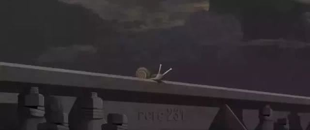 而火车经过的大桥,有一只蜗牛缓慢的爬行着,这只蜗牛贯穿了影片的始终,影片后面会说到蜗牛的含义。