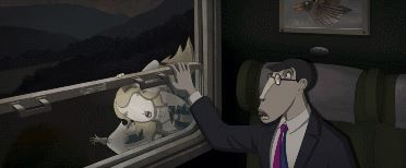 因为他在火车厕所里看见了诡异的女娃娃,回到座位发现一个吹口哨的人抱着一只大蜗牛(对,又是蜗牛)。