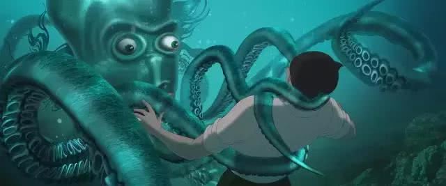 然而下一秒,长发变成绳索,把鲁本拖进海中,温柔的海女变成了章鱼怪,呲牙列嘴的袭击鲁本,