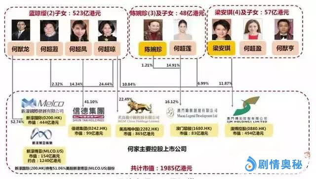 目前形势而言,二房这边占据很大的优势,何鸿燊去年退位时,将位子接替给了二房长女何超琼,且二房手头控股企业最多,市值最高。