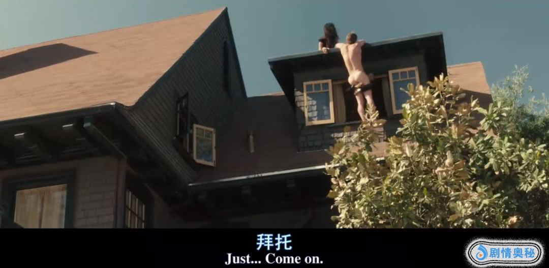 另一边,奥斯卡在迷幻剂的作用下,赤身裸体的爬到了房顶看风景。