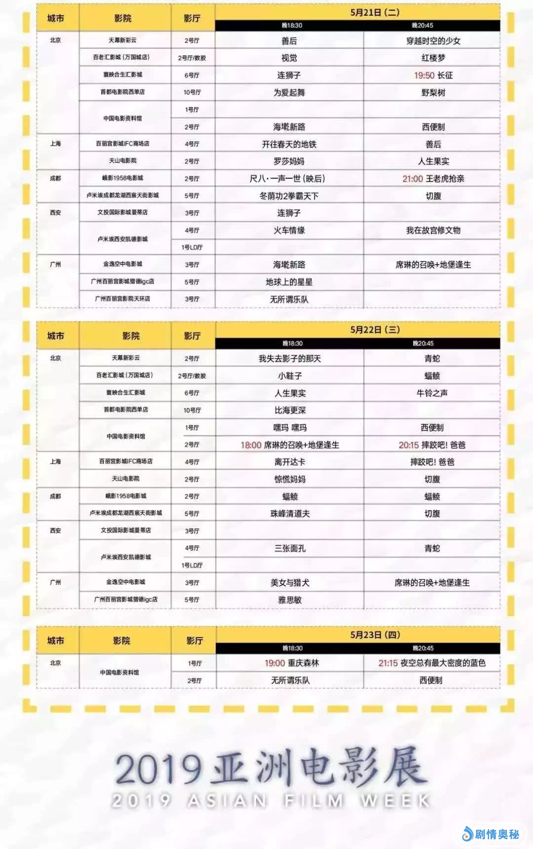 从5月16日至23日,来自亚洲30余个国家和地区的60余部电影,将在北京、上海、广州、成都、西安五个城市的14家影院进行200余场放映。