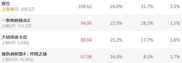 《双生》选择5月18号上映,这个档期不仅错过了五一档,距离暑期档也有点远,其实不算好。虽然避免了跟《复仇者联盟4》这样的超级大片竞争,但近几天票房市场同样将迎来多部大片,其中《一条狗的使命2》同样备受关注,极有可能成为新的票房黑马,《双生》要想大爆压力还是挺大的。