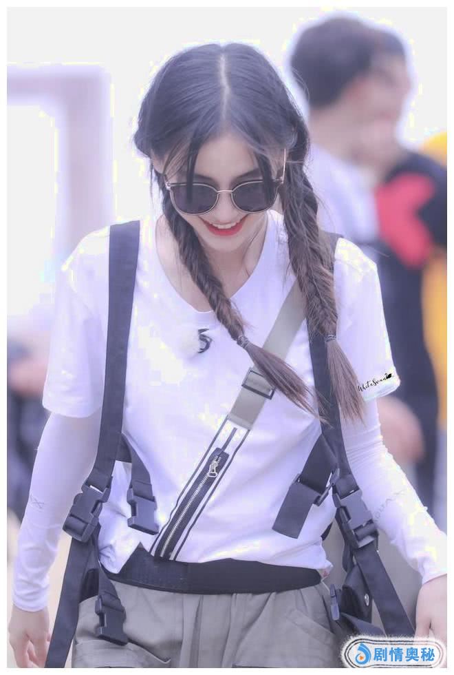 画面中的Baby穿着简单的白T,双马尾格外抢镜。墨镜与小脸相得益彰,既不失时尚感,又把脸衬托得更加立体。