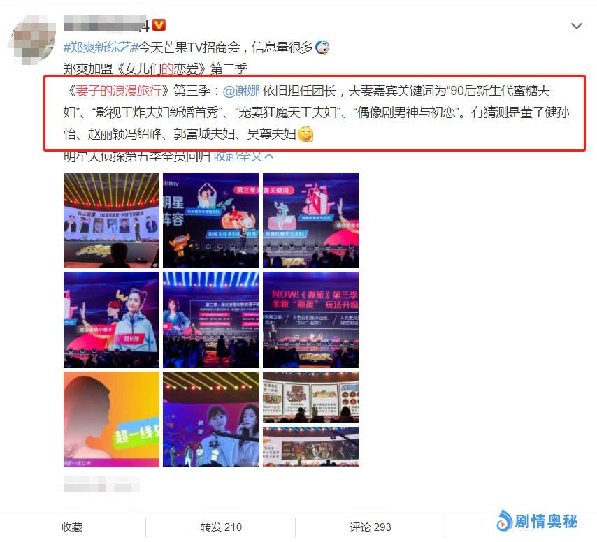 那么这第二季已经是完结了,这下小伙伴们是否还是看不够呢?其实吧,在近日,在芒果台的综艺招商会上, 《妻子的浪漫旅行3》已经来袭啦,然后这第三季颠覆了以往玩法,不再是妻子们出去玩,然后丈夫在演播室里面观看,反而是妻子出游,然后丈夫也出游,然后这夫妻进行隔空对话。