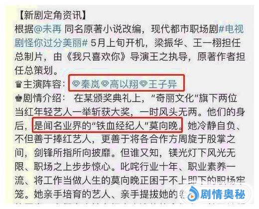 据悉,这次张雨绮被换掉的角色,正是被秦岚抢了去,这部电视剧《怪你过分美丽》剧情就是讲述经纪人的故事,和杨天真所说的经纪人剧本一致,秦岚此前在电视剧《延禧攻略》里扮演的皇后一角让她再度翻红,一时间人气很旺。