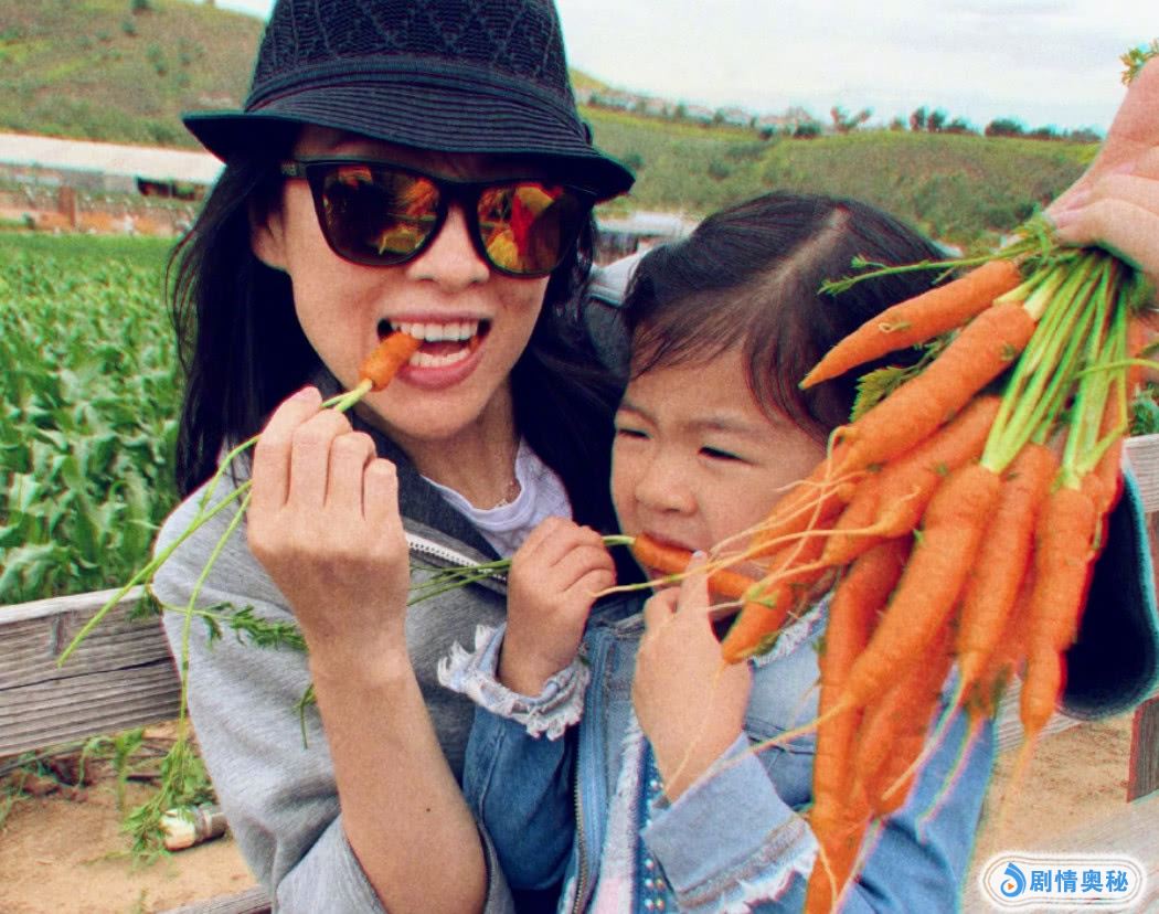 而再看下这章子怡带女儿醒醒去地里拔萝卜,可以看到这醒醒有两条辫子,然后是整个人都显得很活泼。说实话,不愧是章子怡的女儿,小时候萌萌哒,长大后美美哒,对比一下波妞,再看下醒醒,才知道她才是美到不像话。