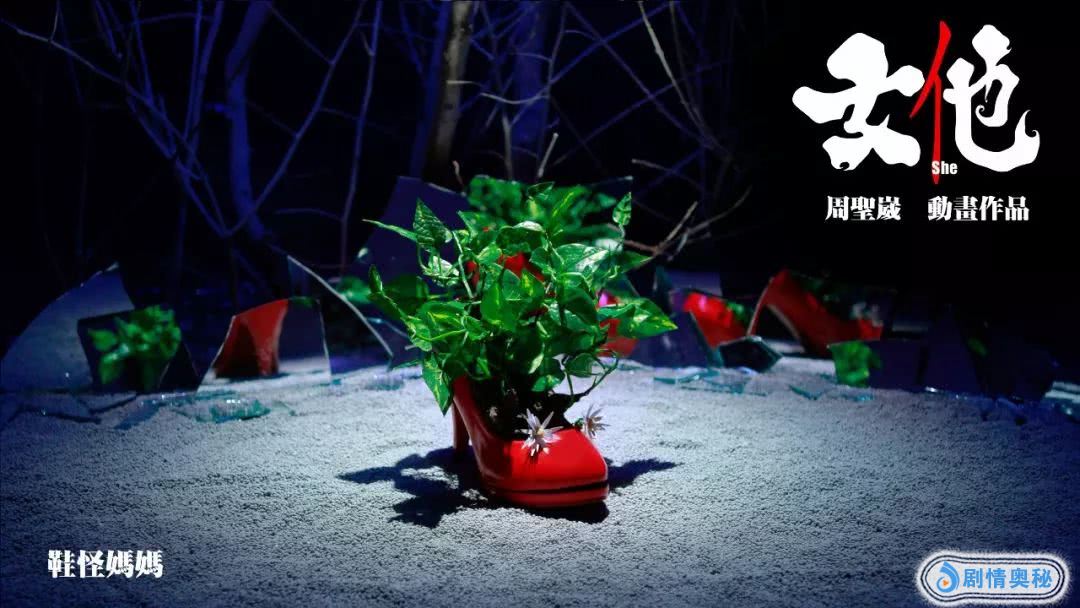 《女他》通过拍摄五万八千张照片、耗时六年制作而成,影片中80%的出镜物品都是同学和朋友们捐助的生活垃圾。就是利用这些不起眼的东西,导演在电影中构建了一个以鞋子为主角的奇幻世界,天马行空,想象力爆棚:在一个男鞋主导的鞋怪世界里,女鞋无权参与工作,一只红色高跟鞋妈妈为了保护和养育女儿,只能通过变性伪装成男鞋才能够投身工作,继而引发了一系列怪事。这部影片没有对白,却触及到了社会、人类、哲学等多个层面的议题。