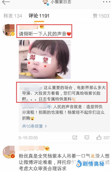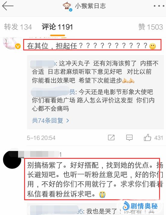 杨紫粉丝表示: 别搞杨紫了,好好搭配,找到她的优点,扬长避短吧。也听一听粉丝意见吧,好的你们用,不好的你们不用就行了!请倾听一下人民的声音!这么重要的场合,电影界那么多大导演、大投资方看着,你们可真给杨紫长脸啊,日志专属特供黑料。