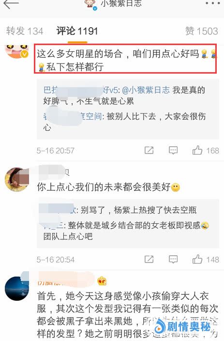 杨紫粉丝们集体手撕工作室,瞬间攻陷了官博,评论区几乎都沸腾了,点开后发现几乎都是吐槽杨紫工作室的内容,粉丝们脾气火爆。热评第一的内容是:在其位,担起任?后面附带一串问号,粉丝质疑杨紫工作室不作为。