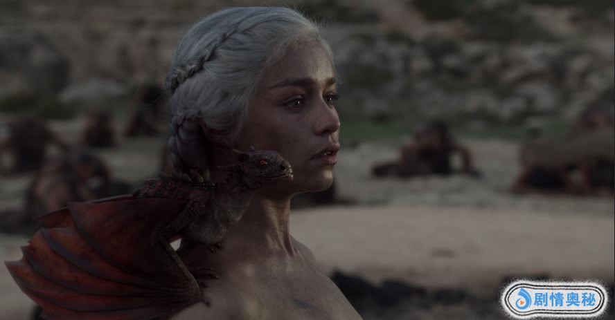 看第一季时,龙母的那条线是让人打上问号的。因为第一季一直相对写实,没有什么夸张的超现实的元素出现,丹妮莉丝那个无脑的哥哥,像一个跳梁小丑,而三枚恐龙蛋也像是装饰品,但第十集血火同源里,丹妮莉丝走进火中,结果天亮火熄灭之后,丹妮莉丝除了身上的衣服化为灰烬,整个人完好无损,三只小龙亮相时真的太震撼了,那场戏让人特别激动,也就此有了憧憬——小龙快快长大。