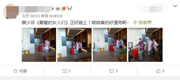 5月17号早上,有网友发文爆料偶遇到了张晋和蔡少芬夫妇,对方夸奖说:娘娘真的好漂亮啊!定位地点是张家界,看来,他们去张家界录制新一期综艺节目了。