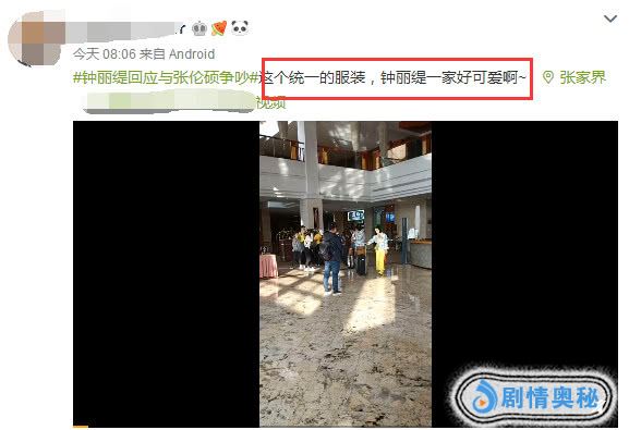 同时该网友还曝光了钟丽缇和张伦硕夫妇最新视频,这是钟丽缇回应与张伦硕吵架后首次亮相,爆料者配文:这个统一的服装,钟丽缇一家好可爱啊!工作人员拿着设备在前边录制!