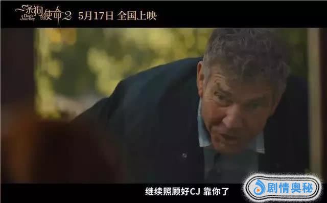 这部则是贝利和伊森最爱的小孙女CJ的故事了。这部剧里,贝利已经年迈到橄榄球都叼不利索了,生命终止之时,伊森让它去照顾被儿媳带走的小孙女CJ,它听不懂伊森说的那些话,但它懂得伊森的难过,所以把这句话记在心里了。