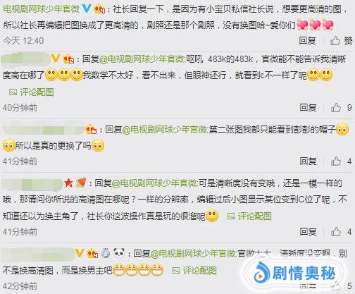 针对粉丝略过激的想法,官博给出了回应:“是因为有小宝贝私信社长说,想要更高清的图,所以社长再编辑把图换成了更高清的,剧照还是那个剧照。”简单来说是应了粉丝的要求进项了高清的换图操作。