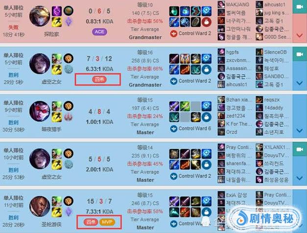 不过亮点并不是狗哥打韩服,而是狗哥的战绩,状态方面也是非常好,五把游戏下来四连胜两把四杀一把mvp,可以说是非常的亮眼了,相信大家都不难发现,狗哥在国服排位的时候一般都会双排而不是自己单排,因为现在国内的玩家都有自己的想法,一言不合就开团,让狗哥自己都承受不住。